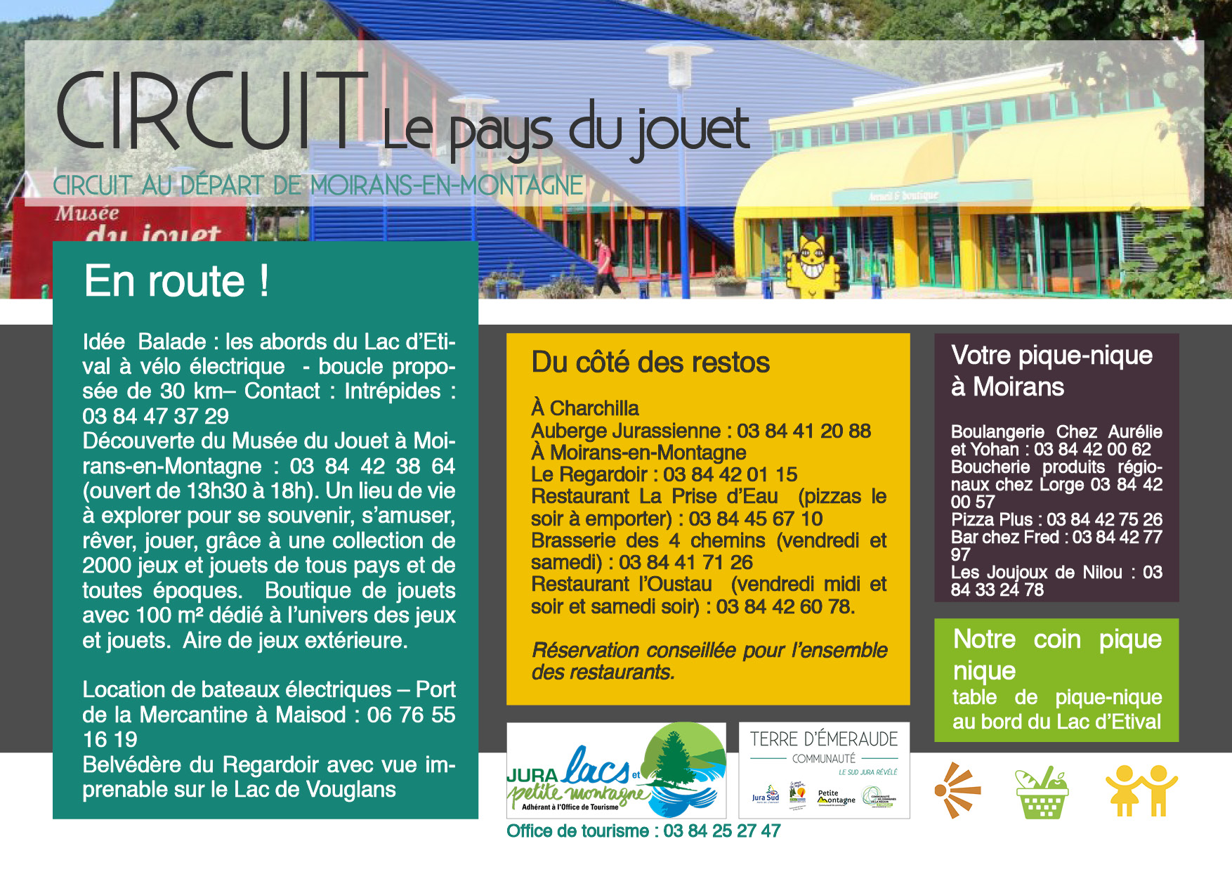 Découverte du Musée du Jouet à Moirans-en-Montagne : 03 84 42 38 64 (ouvert de 13h30 à 18h). Un lieu de vie à explorer pour se souvenir, s’amuser, rêver, jouer, grâce à une collection de 2000 jeux et jouets de tous pays et de toutes époques. Boutique de jouets avec 100 m² dédié à l’univers des jeux et jouets. Aire de jeux extérieure.